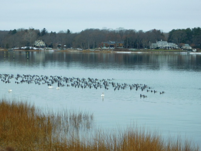Flocks of ducks loudly proclaim their intention of staying around for a while as the weather warms a bit.