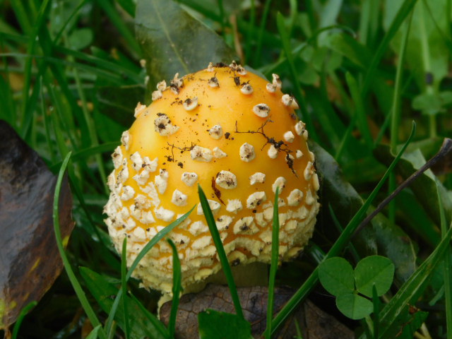 • Since the heyday of the counterculture, “magic mushroom” has implied drug use.  This year, probably because of a very wet season, the magic in mushrooms is their size, shape, and color popping up everywhere in the most unlikely places.  There are some bigger than a softball, some brilliant yellow, some scarlet, some strangely twisted.  And almost all completely undisturbed because I, like almost everyone else, do not have the faintest idea which are safe to eat nor even if I would eat them if I did know.