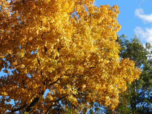• Voting, compared to enjoying seasonal landscapes, even seems pretty sill to me.  My vote in this district, in this country, makes no difference at all in a population of 360 million.  Better I should stare at a brightly backlit orange sugar maple,  or yellow hickory leaves shimmering in the breeze,