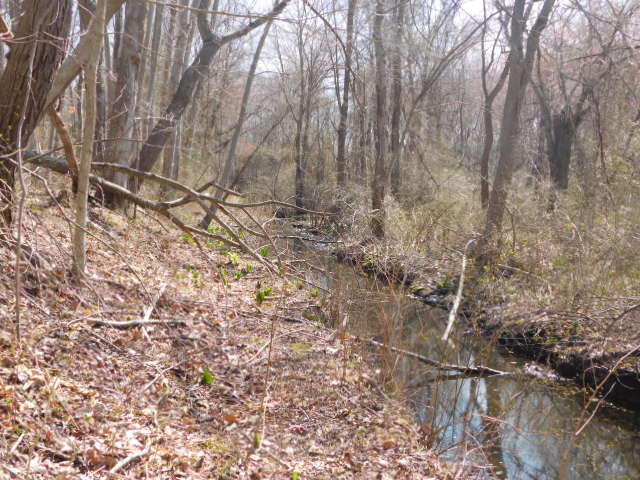 Tiny bits of green grace this hidden woodland, otherwise a wintry view.