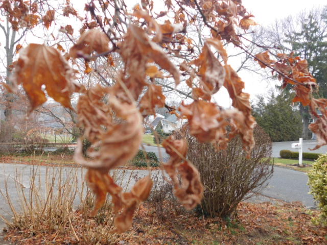 This year, nature has left unusual drifts of shriveled brown leaves clinging to the Japanese maple outside our living room window in mid-January. It is a little worrisome _ what could it mean _ some strange malady? I stare at and through them each morning, and even tried tugging them off only to find each one fiercely held. Another small mystery, which only spring can solve.