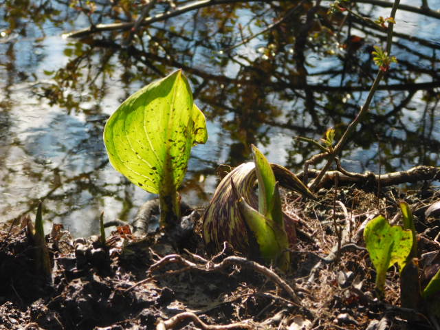 Daffodils and forsythia get all the glory. Let us rather compose an ode to the unloved, unnoticed, forgotten. Around here, skunk cabbage provides such marvelous metaphor. Early colonists hoped that its brilliant early lovely huge green leaves would provide a tasty and nourishing source of vitamins after long winters of snow and ice. Great disappointment when they tried, and hence its name. No industrial uses have subsequently been discovered. It could go extinct without anyone noticing.