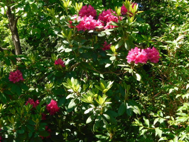 Early June floral displays are perhaps the most inspiring of all. Although the cherry blossoms are long gone, and memories of tulips almost ancient, flowering shrubs are everywhere. Fading azalea blossoms provide a thick coat of brilliance. Rhododendrons explode with purple, white, and red cannon balls. Over it all floats delicate pink and white dogwood. Roses parade as if summoned by bugle calls. Although the grand drooping plumes of purple wisteria have dried away, day by day another midsummer flower such as wild white daisies bursts on the scene.