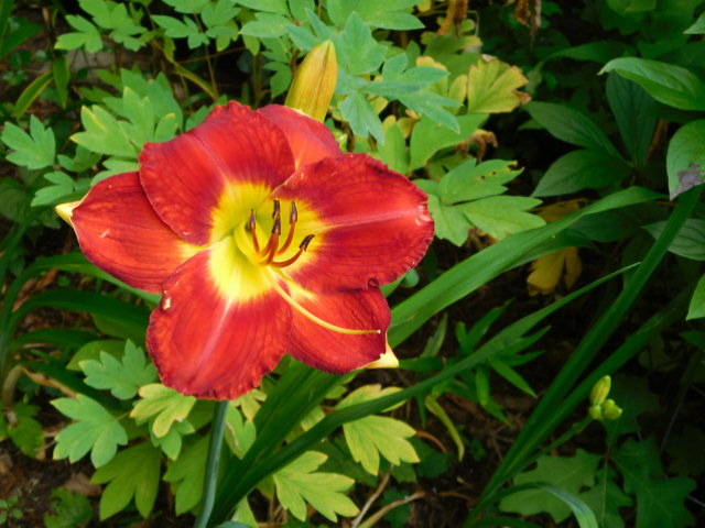 Daylilies, like everything alive, are an endpoint of evolutionary “struggle.” I suppose the species got tough as the weak shriveled. Yet, as the example of the dinosaurs prove, some survival is dumb luck. Some of the dumb luck enjoyed by daylilies (and many invasive species) is the massive ecological engineering done by people, including planting them. And although flowers and trees are (we are assured) always engaged in a competition for scarce resources, day by day and hour by hour the life of a giant oak or a daylily patch hardly seems as terrifying or exhausting as Hobbesian theory predicts. Maybe our own jobs should reflect that observation.
