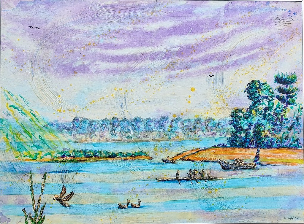 Vast flowing sky/deep flowing water/I and the rest on an interface/all busyness