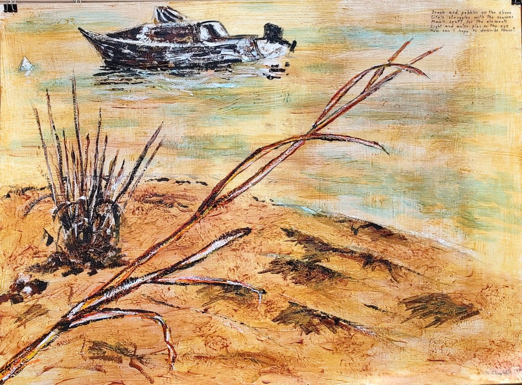 Dreck and pebbles on the shore / life’s struggles with the seasons / man’s craft for the elements / light and water play on the eye / how can I hope to describe them?