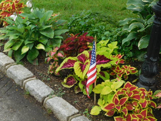 Joan has provided the human touch, selecting and arranging perennials, pots, hanging baskets, and plastic urns to display what she considers the most perfect arrangement. She shapes high and low, red and blue and orange, small leaves and large, other infinitely complex internal judgements of aesthetics, until she considers it as right as can be. Or at least as right as it can be on our budget. I simply sit and marvel, and pretend the plastic is ceramic, the molded decorations done by some master craftsman, and even project a ghostly image of a goatherd and his sweetheart racing through verdant meadows.