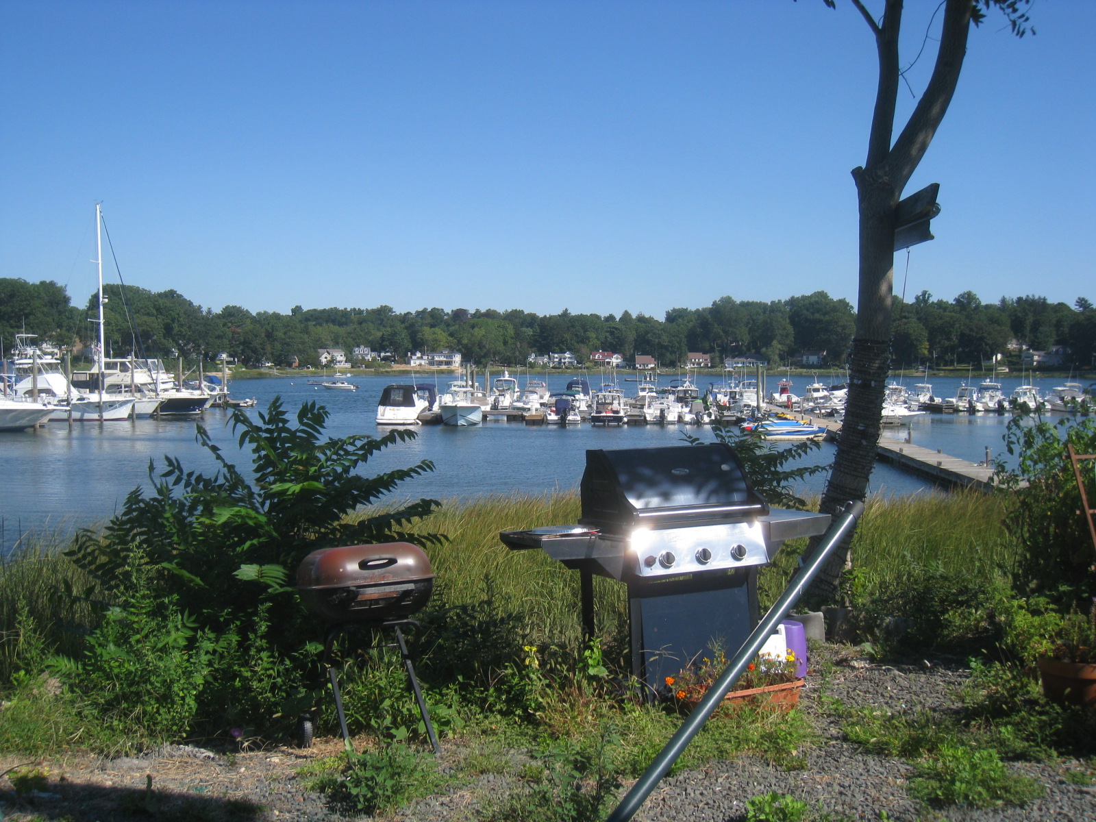 This view is far from timeless _ anchored in artifacts of exactly this time, from the chain link fence to the dock, to the yachts in the marina. Fifty years ago, this would have been pretty empty with no fence, no docks and maybe one anchored clamboat. Fifty years from now, it is probably all under water. We think the world goes on as we have known it forever, and what we have known has been there always, but that is never true. We are truly dust in the wind.