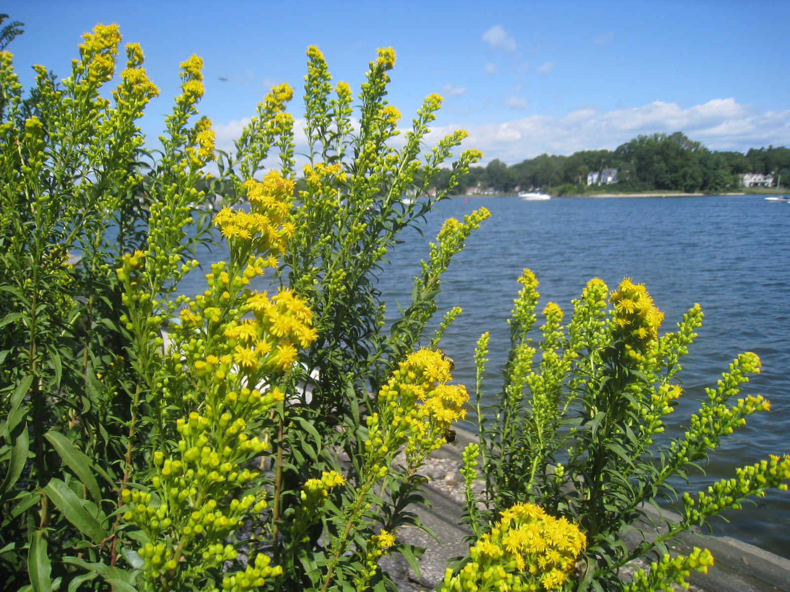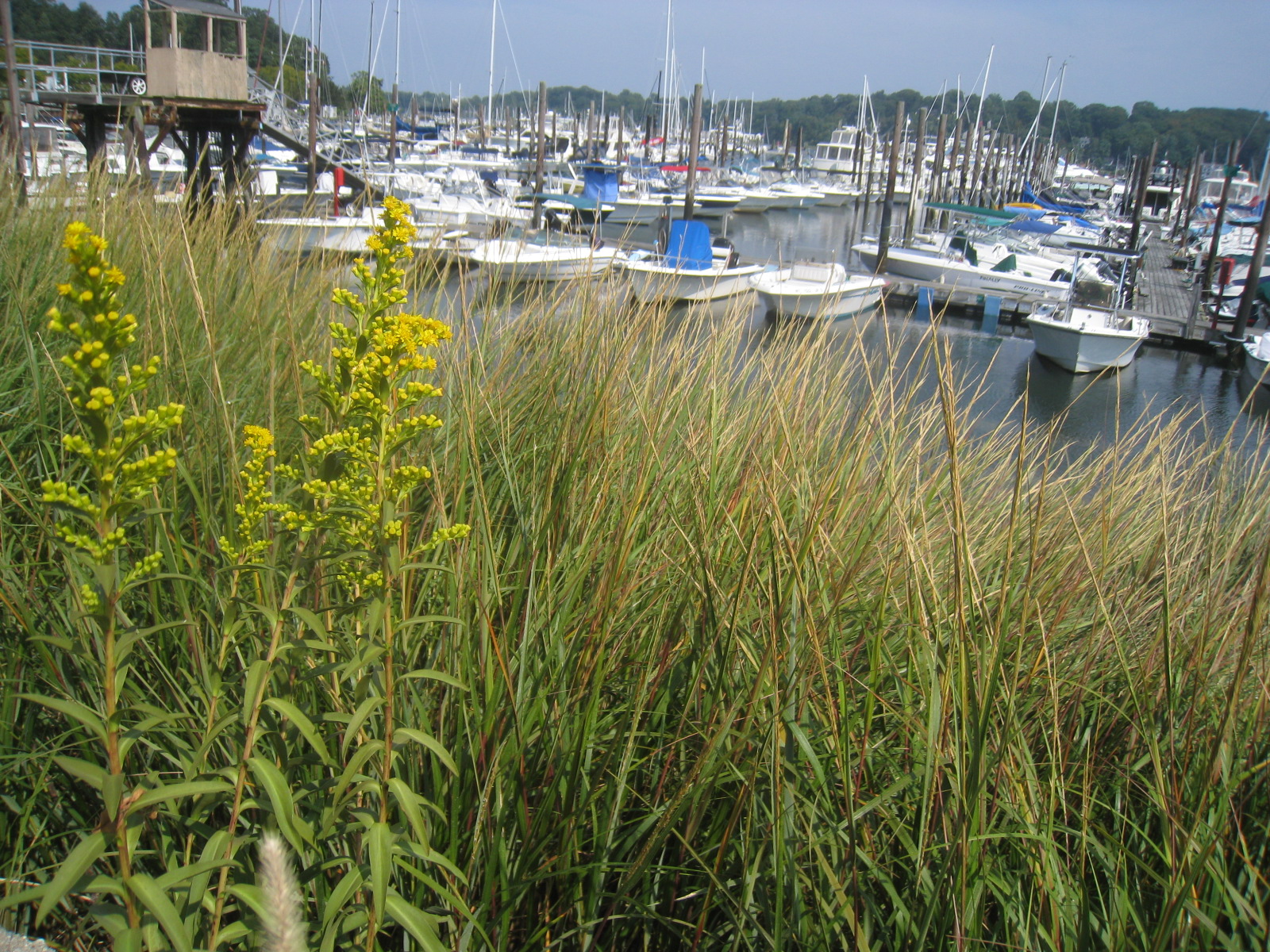Storm clouds, light rain, wind, and a feeling of autumn even though the temperature is pretty warm. The grasses are turning, the leaves are stripping off the branches, berries are ripe, and the goldenrod is in full force. Yet almost nobody comes down here to the beach to see anything _ busy rushing somewhere on the highway above, they might simply note that the sun is not out today as they drive to their important engagements.